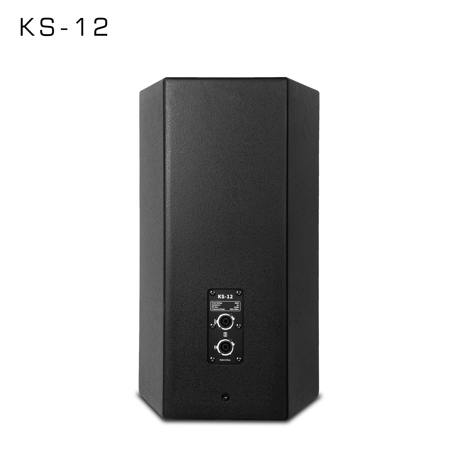KS12 50HZ-18KHZ LF 1*12"(65mm Voice coil);HF 1*1.35"(34mm Voice coil) 350W(RMS) 95dB 126dB 8Ω 100°H*50°V 2*NL4 Speakon M8 Suspension point*10pc;Base*1pc 15mm Environmentral Proteation wear-resistant black matte water-based paint 351*600.5*380mm Hotel/Multifunctional hall/Conference room/Outdoor performance |