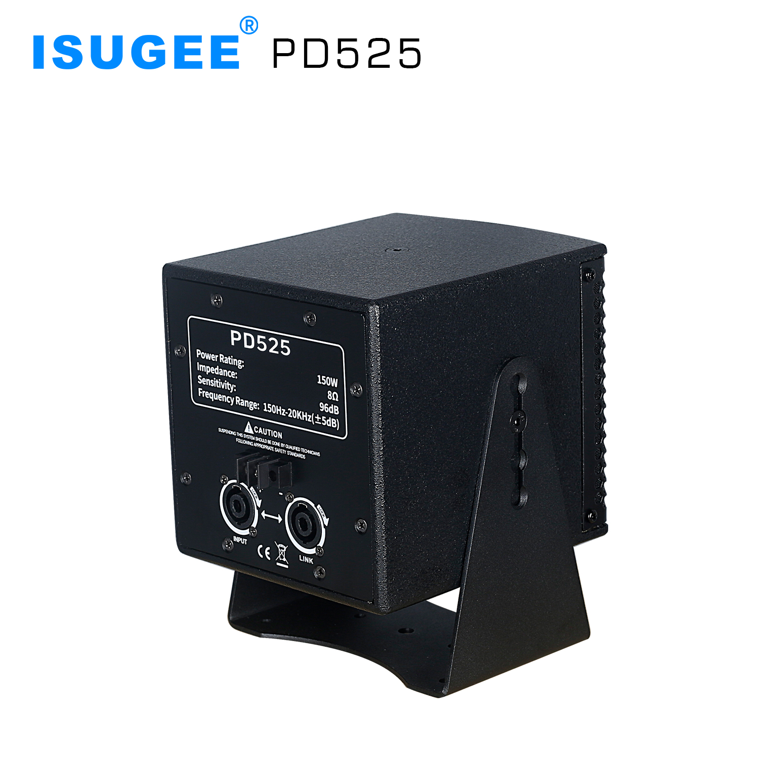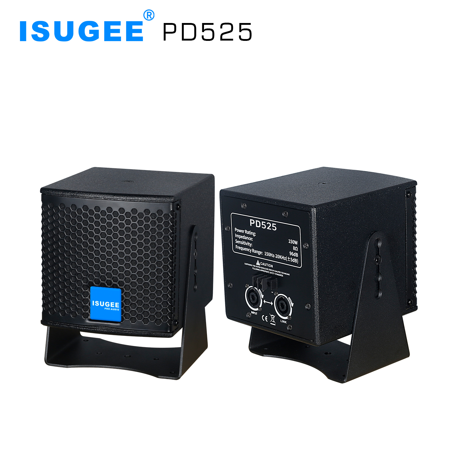 PD525 125Hz-20kHz(±5dB) MF: 1*5”(35mm Voice coil unit) ; HF 1*1" (25mm Voice coil ) ; MF: 100W(RMS)/200W(Program);HF:30W(RMS)/60W(Program) 96dB 120dB 8Ω 90°H *60°V 2*NL4 Programon four base support 12mm plywood, Black water-based paint 155*155*185mm Hotel / Conference Multifunctional room |